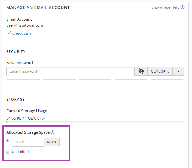 Yeni açılan səhifədə, Storage bölməsində istədyiniz icazəni daxil edin və ya unlimited düyməsini seçib limitsiz icazə təyin edin: