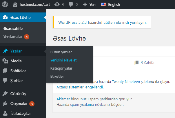 Bütün yazılar. Bu bölmədə saytda yaratdığınız bütün yazılar əks olunur. Burada hər başlığın, müəlifin, kateqoriyanın, etiketin, və yazının tarixini görəcəksiniz.