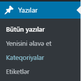 Kateqoriyalar. Bu parametr yazıları istədyiniz kimi təsnif etməyə imkan verir. Kateqoriyanızın adını təyin edə bilərsiniz və hətta alt kateqoriyalar yarada bilərsiniz.