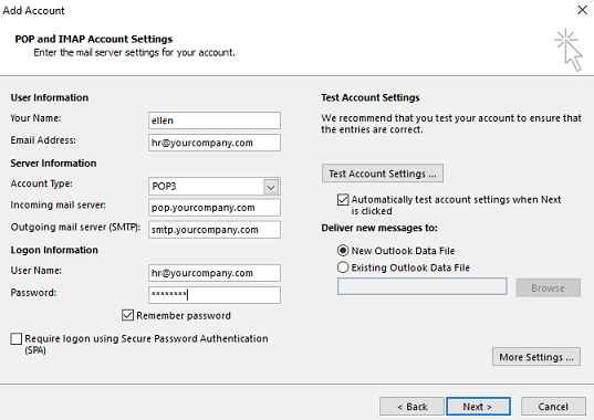 After you complete all these settings, now it’s time to test the configuration. Open the account settings again and click Test Account Settings.