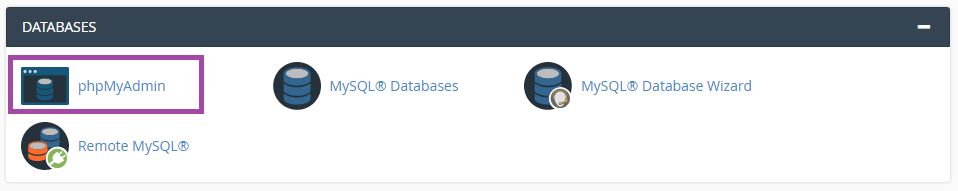 1. Log into cPanel > Go to Databases section > phpMyAdmin menu: