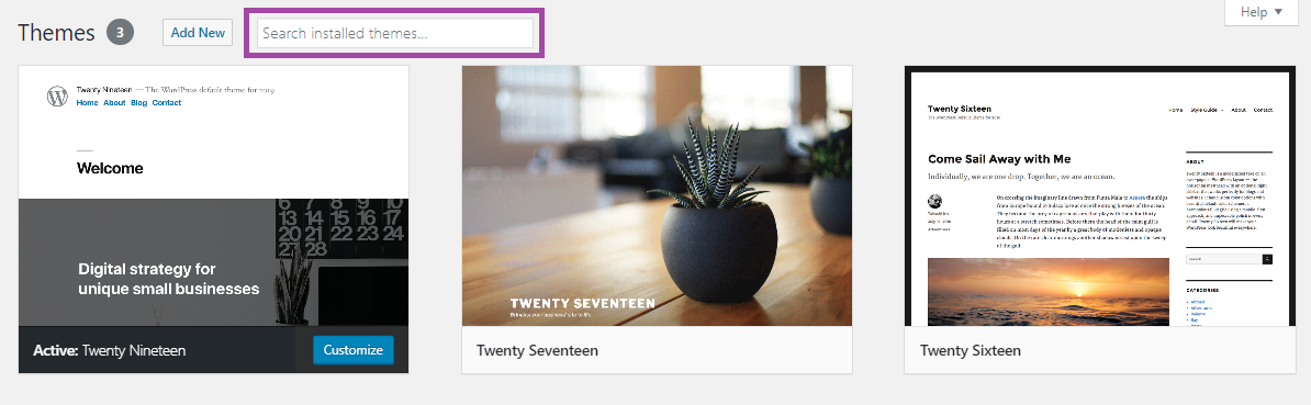You can use certain keywords to search for themes. To begin searching from your WordPress Dashboard: