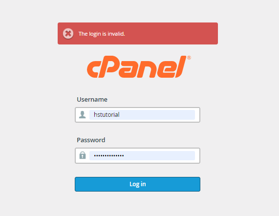 Если при попытке входа в cPanel вы получаете ошибку о том, что указаны неверные параметры входа, перепроверьте учетные данные cPanel, которые были отправлены вам в приветственном письме от Hostimul (убедитесь, что нет лишних пробелов) или же используйте кнопки автоматического входа в cPanel в учетной записи Hostimul.