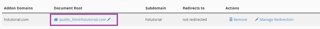 По умолчанию дополнительные домены и поддомены используют папки в папке public_html — таким образом, root-каталогом для дополнительного домена под названием testdomain.com по умолчанию будет public_html / testdomain.com.