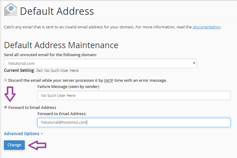 Адрес электронной почты по умолчанию будет «перехватывать» любую почту, отправленную на недействительный адрес электронной почты для вашего домена.