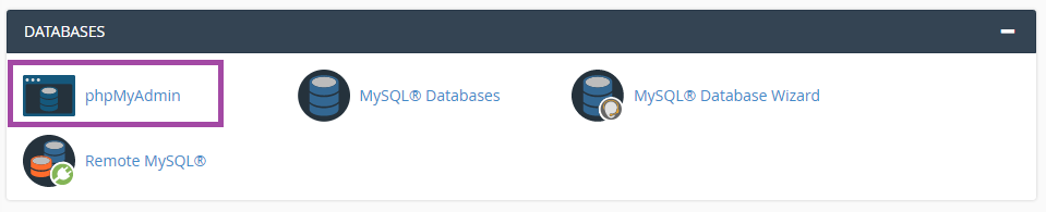 1. Войдите в cPanel> раздел Базы данных> выберите phpMyAdmin: