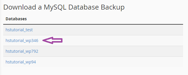 4. Нажмите на нужную базу данных в меню Download MySQL Database Backup, чтобы начать загрузку: