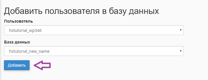 Прокрутите страницу вниз до раздела Добавить пользователя в базу данных.