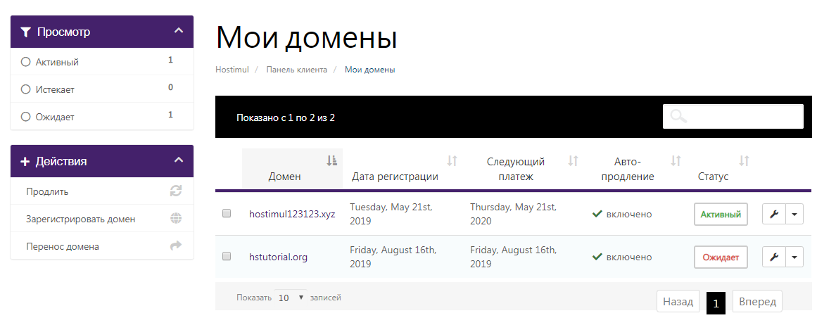 5. На новой странице вы увидите список ваших доменов и сможете управлять ими: