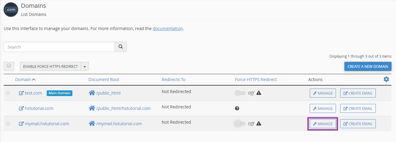 Чтобы удалить домен из вашей учетной записи cPanel, нажмите кнопку «Удалить домен» и подтвердите, что вы хотите удалить домен: