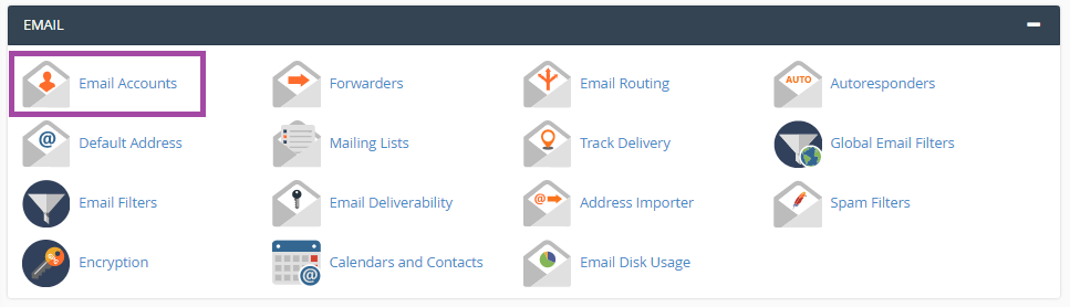 1. Войдите в cPanel и перейдите в меню учетных записей электронной почты: