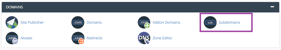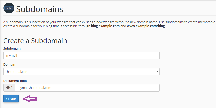 5. Перейдите в меню Поддомены и создайте собственный поддомен, который вы хотите использовать для входа в веб-почту. Например, myemail.yourdomain.com: