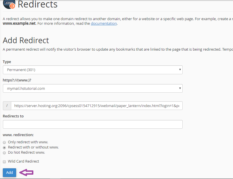 6. Перейдите в меню Перенаправления и перенаправьте созданный поддомен на URL-адрес, полученный на шаге 4: