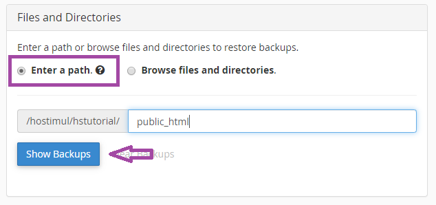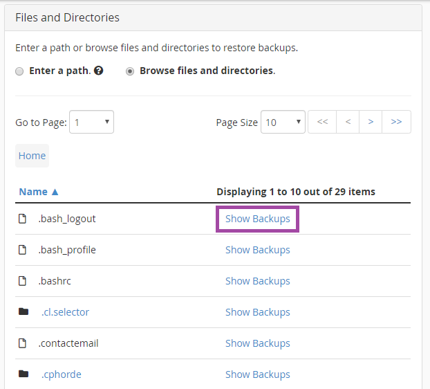Нажмите «Show Backups», чтобы отобразить список резервных копий этого файла или каталога: