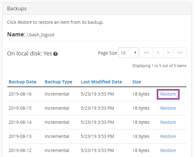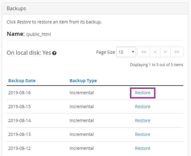 В разделе «Backups» выберите резервную копию, которую вы хотите восстановить, и нажмите «Restore»: