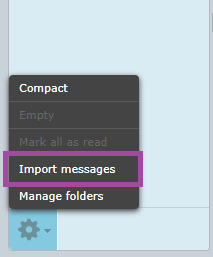 Чтобы импортировать электронные письма с помощью веб-почты Roundcube, нажмите значок шестеренки> выберите «Импортировать сообщения»: