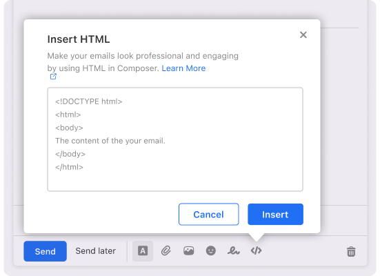 Make your emails more visually engaging. Use HTML codes to include forms, CTA buttons, and other interactive elements.