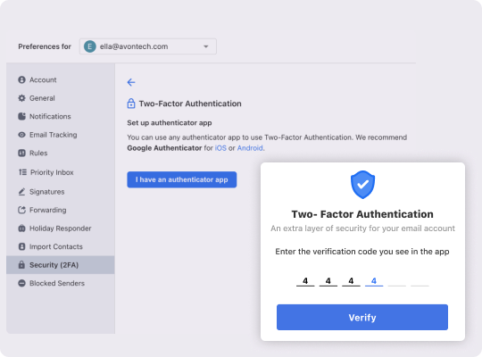 Two-Factor Authentication ensures only you can access your account by entering both a dynamic secret code and your account password.